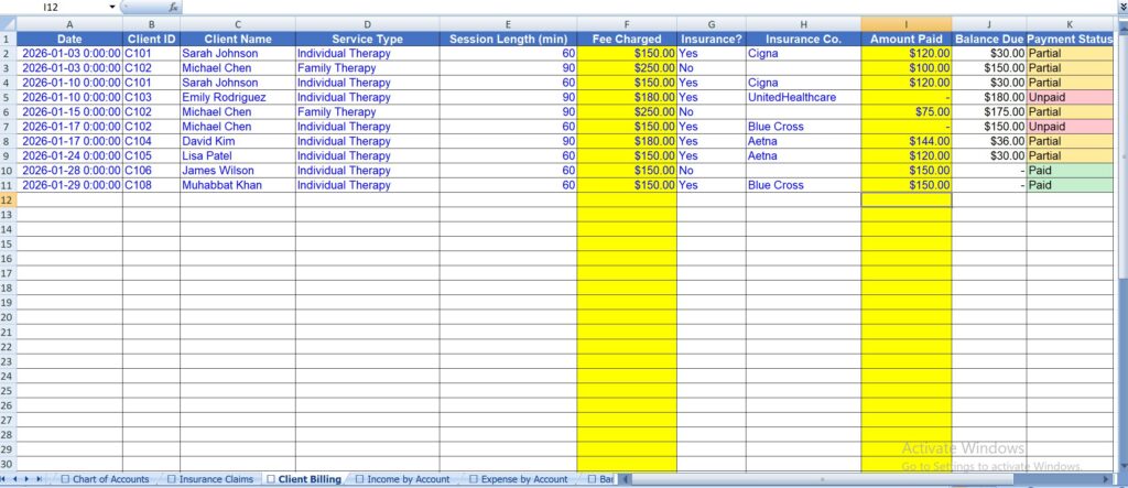 Mental Health Practice Bookkeeping Spreadsheet | Therapist Excel Template | Private Practice Finance Tracker | Insurance Claims, Client Billing, Tax Deductions