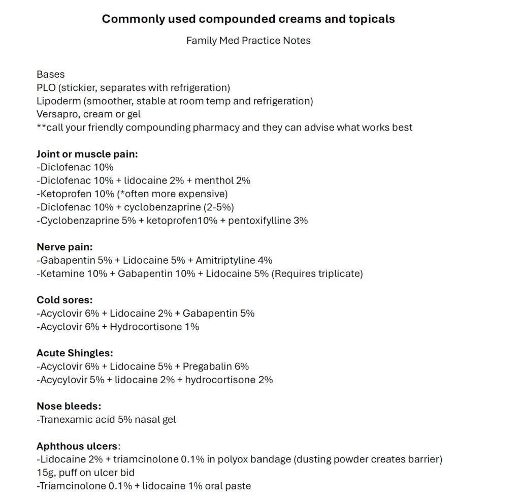 Family Med – Commonly used topicals + creams